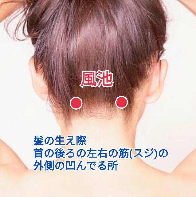 首の後ろの髪の生え際、首の中心から指2本分外側。
